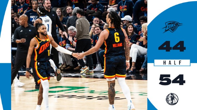 [英文解说-腾讯视频]2024年5月16日NBA西部半决赛G5 独行侠vs雷霆 第二节录像回放